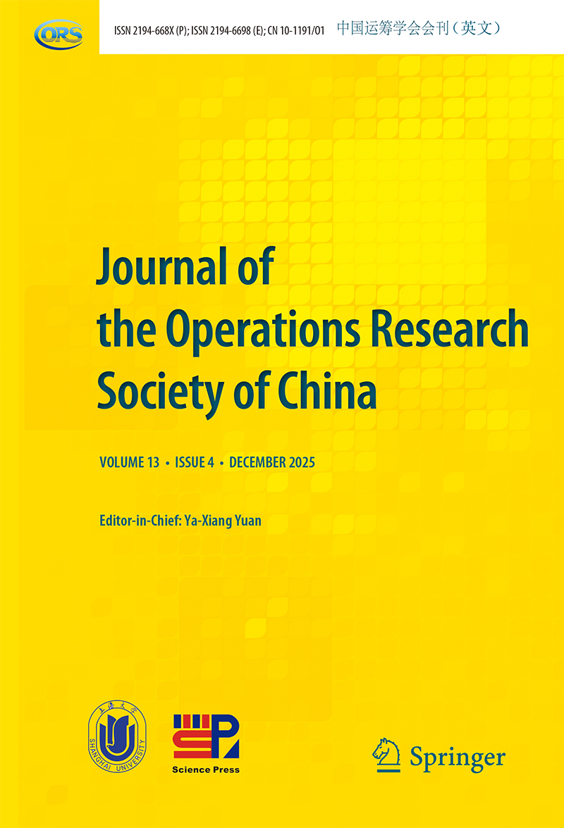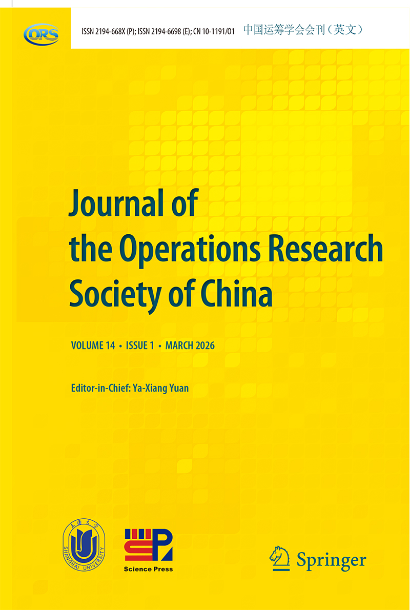 Journal of the Operations Research Society of China is the flagship journal of the Operations Research Society of China. Its primary goal is to promote researches and applications of all aspects of operational research. This journal provides a forum for practitioners, academics and researchers in operational research and related fields. It reflects the rapid social and economic development of China and leads to new problems and challenges which require new operations research methodology and techniques. It publishes 4 issues of one volume per year, including invited reviews, regular papers, short communications, book reviews and so on.